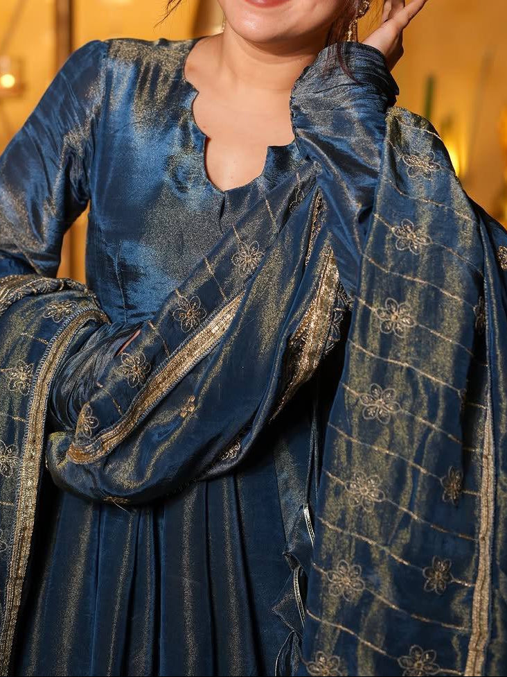 New Designer Party Wear Anarkali With Palazzo & Embroidered Dupatta